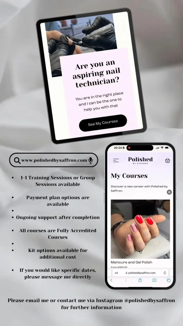 Hey my lovely people, my name is Saffron and I am the owner of Polished by Saffron! I'm a Nail Technician based in Berkshire and I absolutely love what I do. My passion for nails began when I was 13 years old, I just used to love painting my mums and sisters nails but never would I have imagined back then I would be running a successful business as a nail tech!